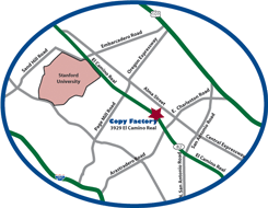 Copy Factory provides digital and offset printing, color and black & white copies, poster printing, and bindery services for Palo Alto, Los Altos, Mountain View, Menlo Park, Redwood City, Sunnyvale, San Jose, Santa Clara, the San Francisco Peninsula, Bay Area, South Bay, California, Nevada and the nation at large.
